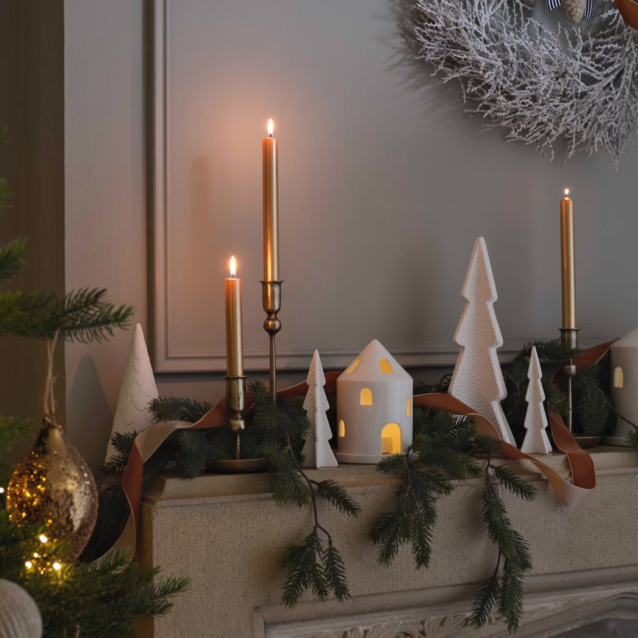 Επιλέξτε κεριά σε μεγάλες διαστάσεις, σε απροσδόκητα χρώματα, όμορφα κηροπήγια και στεφάνια, για να τα στολίσετε με κλαδιά από έλατο ή πεύκο και να τα τοποθετήσετε στο γιορτινό τραπέζι σας.