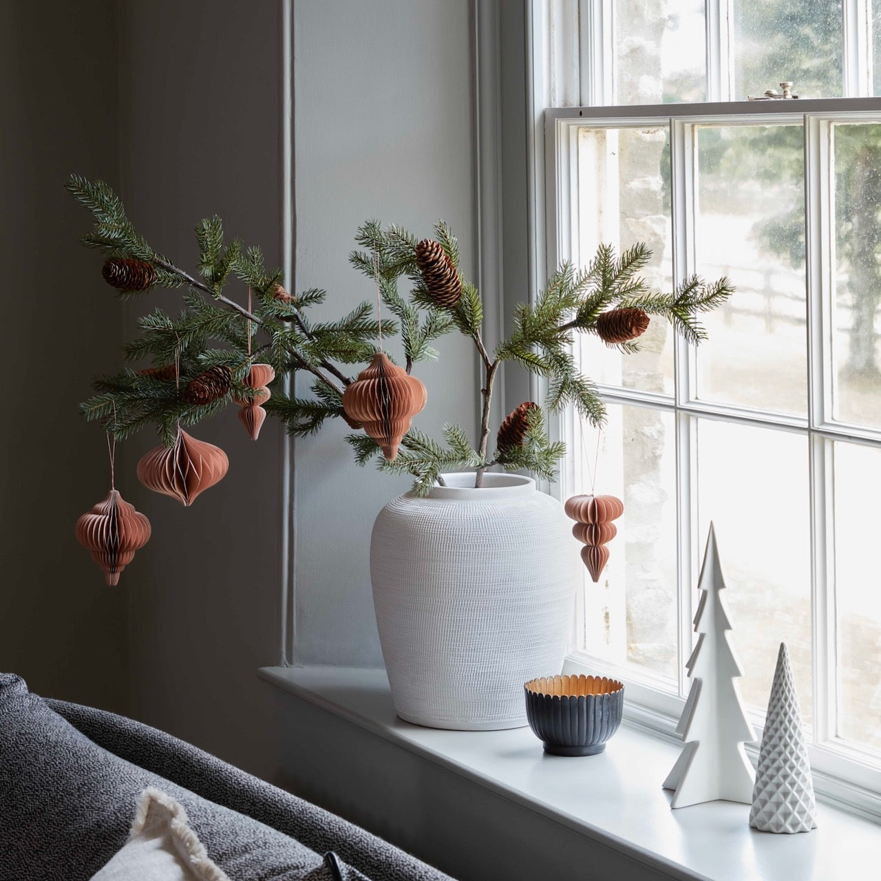 Αυτές οι επιλογές δημιουργούν μια μινιμαλιστική, φυσική και βιώσιμη αισθητική που κυριαρχεί στη φετινή Χριστουγεννιάτικη διακόσμηση.
